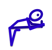 Flying vehicle pose: Legs are wide apart, the upper body is turned towards the front leg (unlike Warrior II, in which the torso remains perpendicular to the splayed legs). The Pelvis faces the front leg and the front leg is bent so the thigh is parallel to the floor. The back leg pushes straight back strongly (ideally the back heel is on the floor). The arms are extended horizontally out to the side in order to assist with balance.