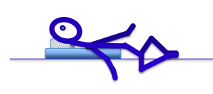Laying back over a bolster with the head and neck supported by a flat blanket. The soles of the feet are together and the knees wide. We sometimes have a strap around the lower waist near the groins and around the ankles – to stop the feet slipping and to allow the groins to relax.