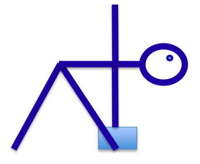 Shoulders on some height, neck and head free, holding the chair legs firmly, heels on the front of chair seat, pressing the pelvis up and forward.