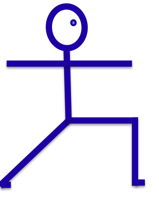 Flying vehicle pose: Legs are wide apart, the upper body is turned towards the front leg (unlike Warrior II, in which the torso remains perpendicular to the splayed legs). The Pelvis faces the front leg and the front leg is bent so the thigh is parallel to the floor. The back leg pushes straight back strongly (ideally the back heel is on the floor). The arms are extended horizontally out to the side in order to assist with balance.